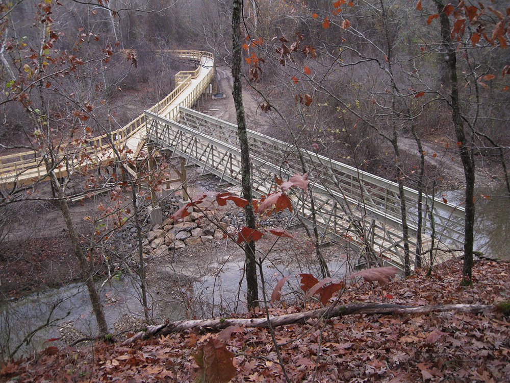The Lake Ouachita Vista Trail (LOViT) traverses about 40 miles along the south side of Lake Ouachita through mixed hardwood and pine forests. The trail is open to hikers and mountain bikers.