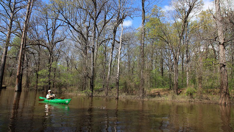 Watch for bald eagles, prothonotary warblers, Swainson’s warblers, fulvous whistling ducks, wood ducks, hooded mergansers, barred owls, great horned owls, great blue herons, green herons and eastern wild turkeys. Beavers, otters, raccoons, mink and deer are common along the water. The creek and forest are dominated by cypress, overcup oak, southern red oak, cherrybark oak and delta post oak. Cut-Off Creek Ravines Natural Area features white oak and shortleaf pine on higher ground, and overcup oak and bald cypress in lower elevation. The Coastal Plain and Mississippi Alluvial Plain meet here.