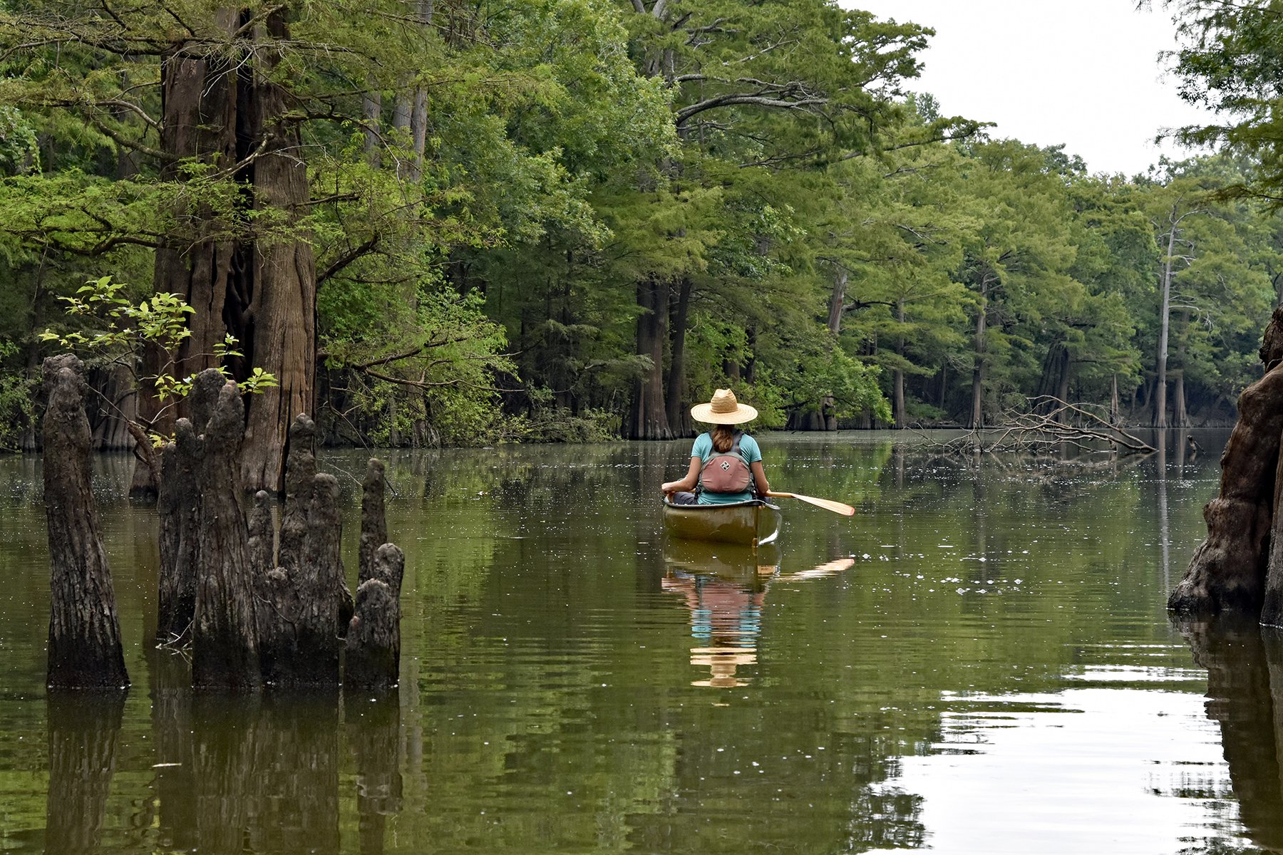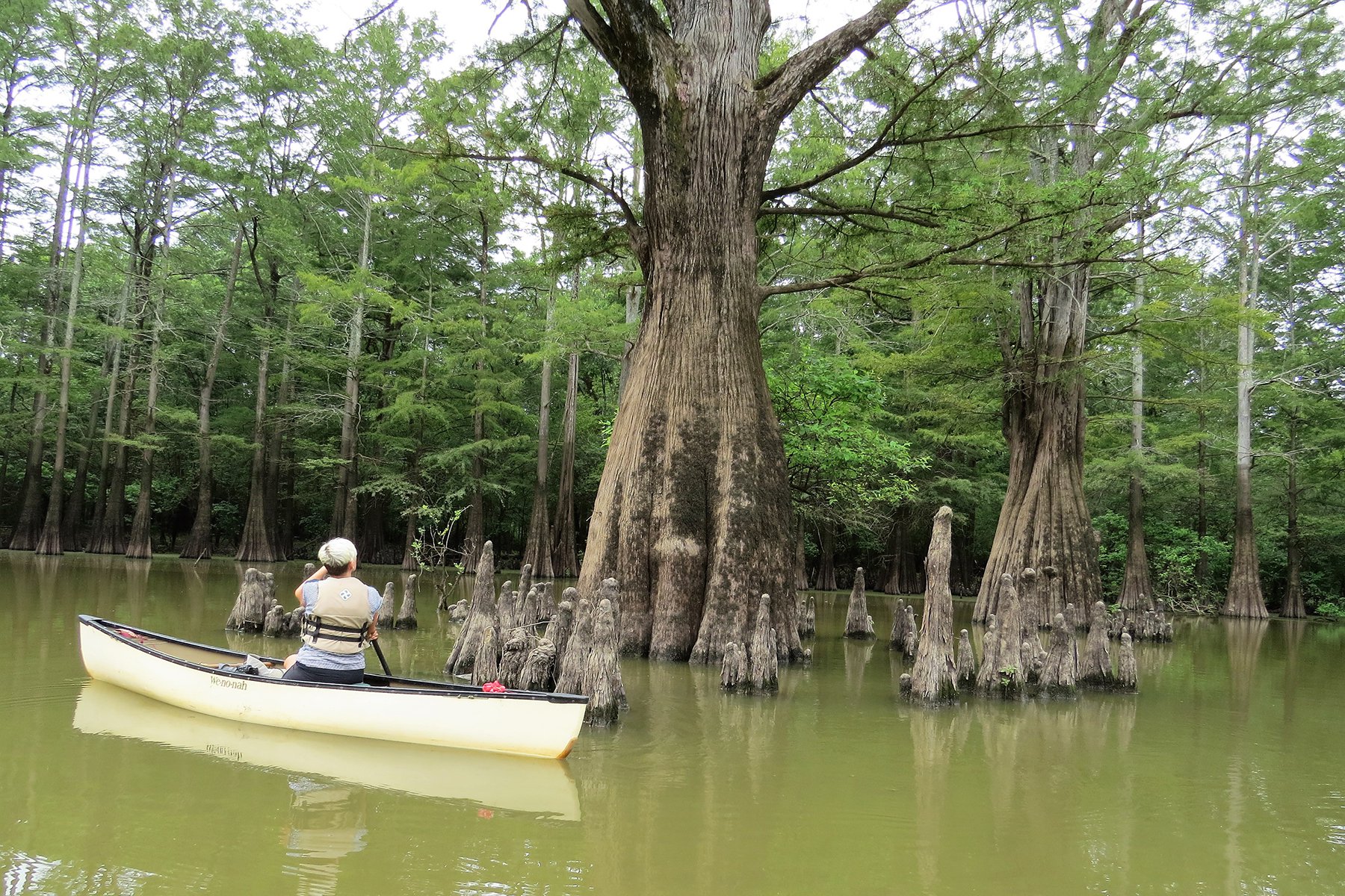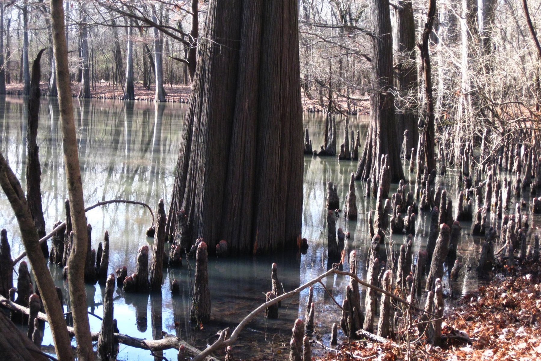 A 2.4-mile, out-and-back trail leads to the largest cypress tree in the state. The trailhead is on Refuge Road, 1.8 miles from the Smokehouse Hill entrance near Burnt Lake.
