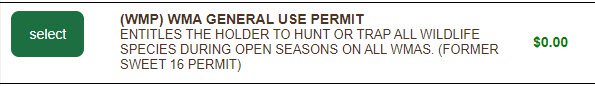 A free annual WMA General Use Permit is required to hunt or trap on all WMAs along with any quota hunt permits or access permits. See WMA area notes for permits required.