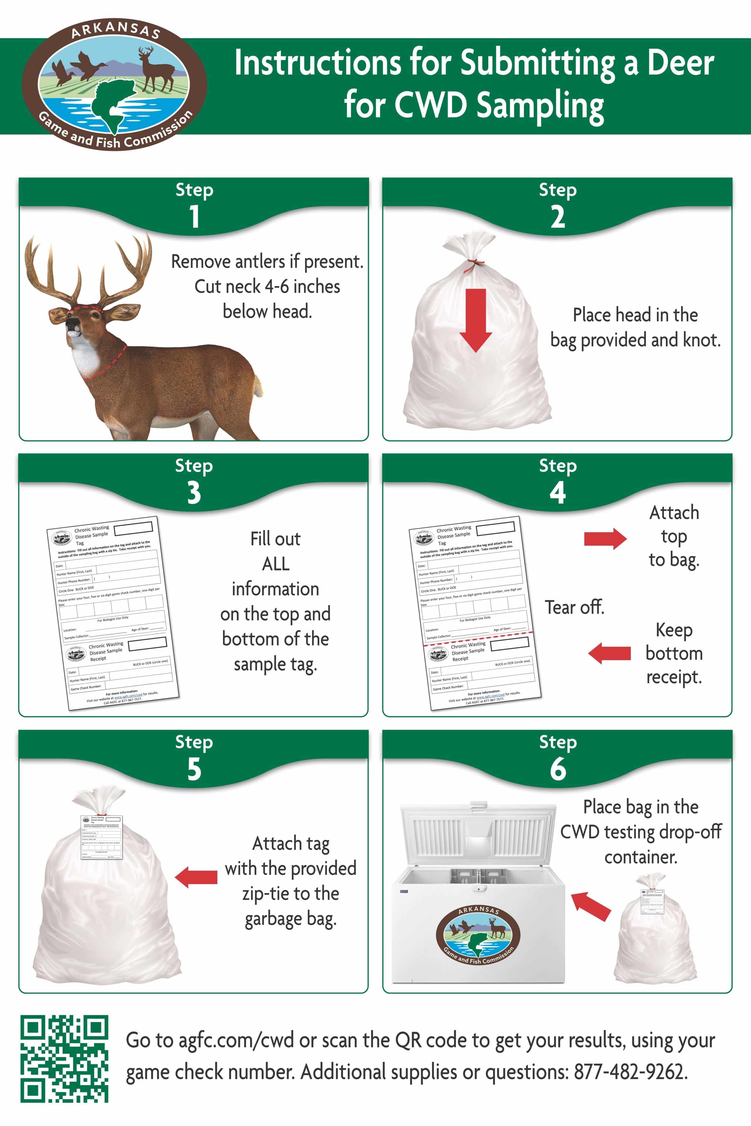 The AGFC offers many avenues for hunters to have deer or elk tested for Chronic Wasting Disease (CWD). The Centers for Disease Control and Prevention strongly recommends all hunters who are hunting in areas where CWD is known to be present to have their deer tested. Submitting a deer for CWD sampling is voluntary; however, all elk harvested in Arkansas must be submitted for a CWD test. CWD testing is free.
