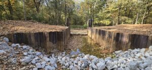 - At the beginning of 2025, seven overshot water control structures were installed to replace the undersized flashboard risers. These overshot water control structures will give AGFC the ability to proactively manage the water while adding the needed flow capacity to promote a sustainable bottomland forest. Two more constrictions were identified, removed and replaced with bridges.
