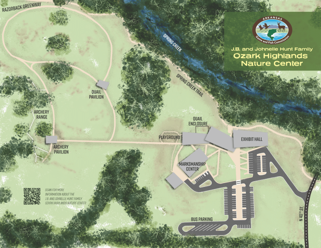 This 32,000 square foot facility on over 61 acres is the newest place to learn about the natural world and outdoor recreation in Northwest Arkansas. We are located at 3400 North 40th Street, Springdale, AR 72762.