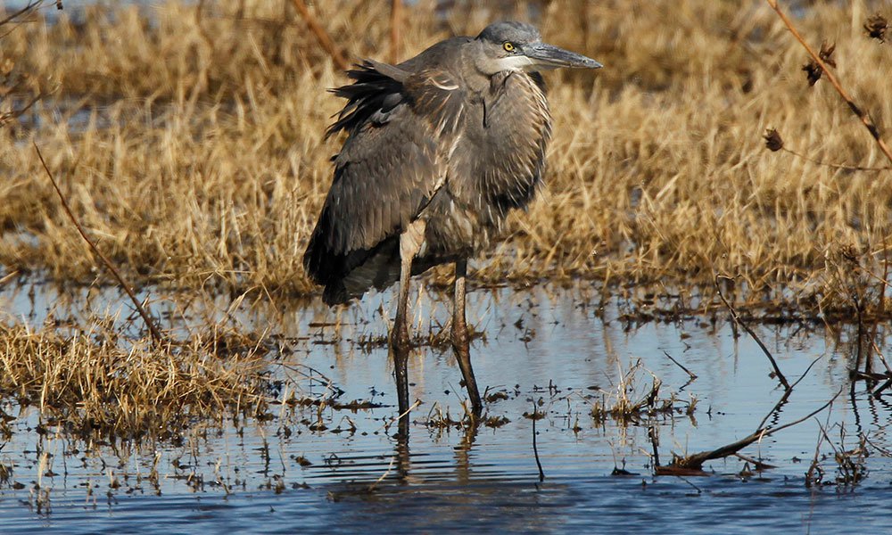 These managed wetlands change with the seasons, along with the wildlife that use them. Watch year-round for wading birds such as great blue herons stalking their prey on the water’s edge. During summer, look for Mississippi kites hunting dragonflies overhead, and kingbirds that fly from their perches to snatch insects in midair. Wet conditions during fall and winter attract dabbling ducks—look for them bottoms-up as they feed on seeds and insects in the shallow water. An assortment of shorebirds migrates through during spring and late summer into fall. They probe the mud with their long bills, looking for insects.
