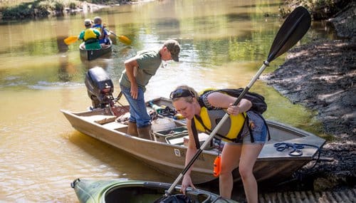 According to Arkansas law, children 12 and under must wear a Coast Guard-approved life jacket, and anyone on a boat must have one ready to use. Vessels 16 feet and longer must have a throwable life preserver aboard. Glass containers are illegal in canoes and kayaks. Paddlers must securely fasten cooler lids, use attached, closeable trash containers and keep beverages in floating holders.