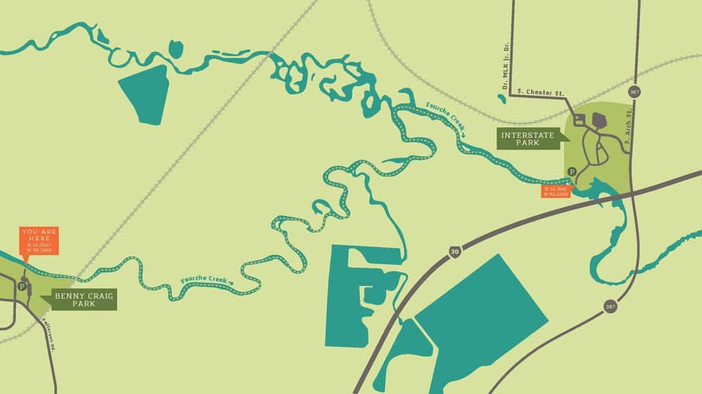 Benny Craig Park to Interstate Park: 4.4 miles. Head upstream from Interstate Park Access for a scenic, out-and-back paddle into Fourche Bottoms.