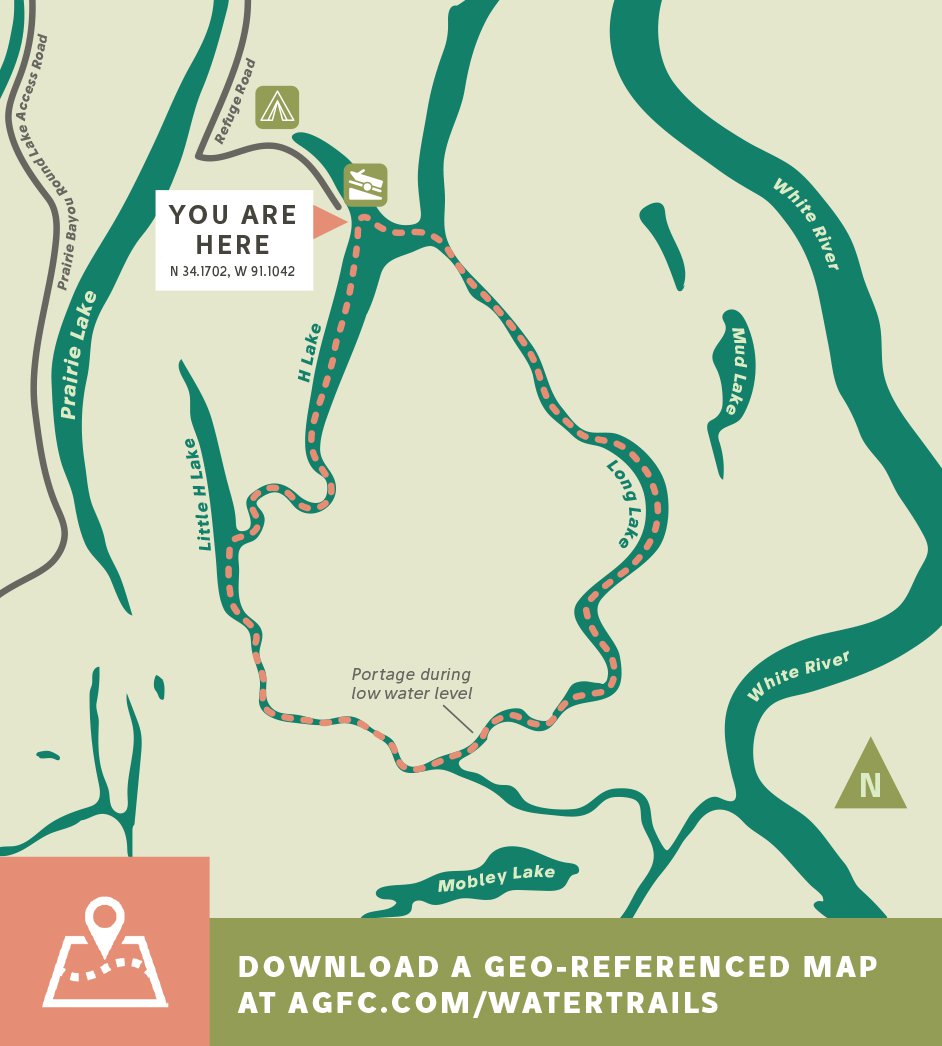 H Lake and many other small lakes in the refuge offer anglers opportunities to catch largemouth bass, crappie, bream and catfish. Fishing is open on H Lake March 1-Nov. 30. Check Arkansas Game and Fish Commission fishing regulations.