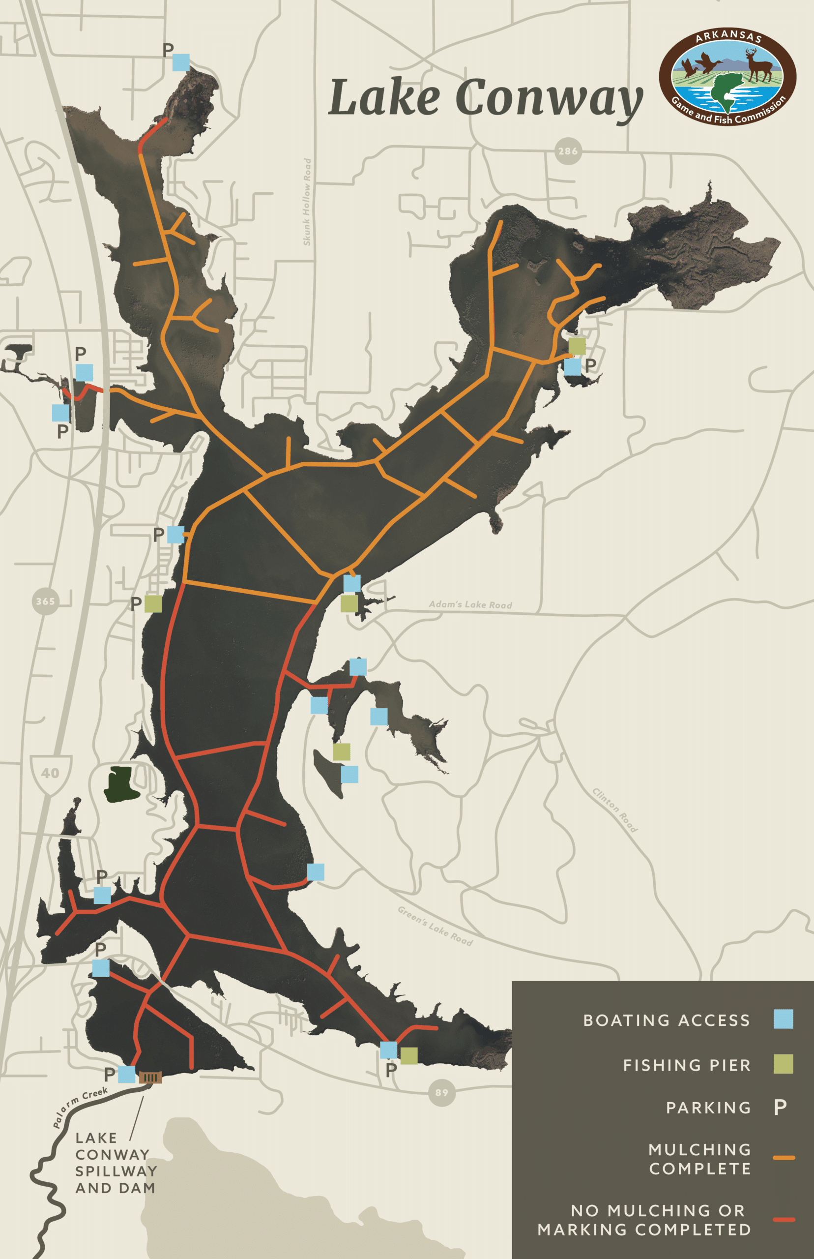 - May 5, 2025: The Arkansas Game and Fish Commission is extending the deadline for landowners to repair boat docks and other permitted structures on Lake Conway to Dec. 31, 2025. Read more about it here.