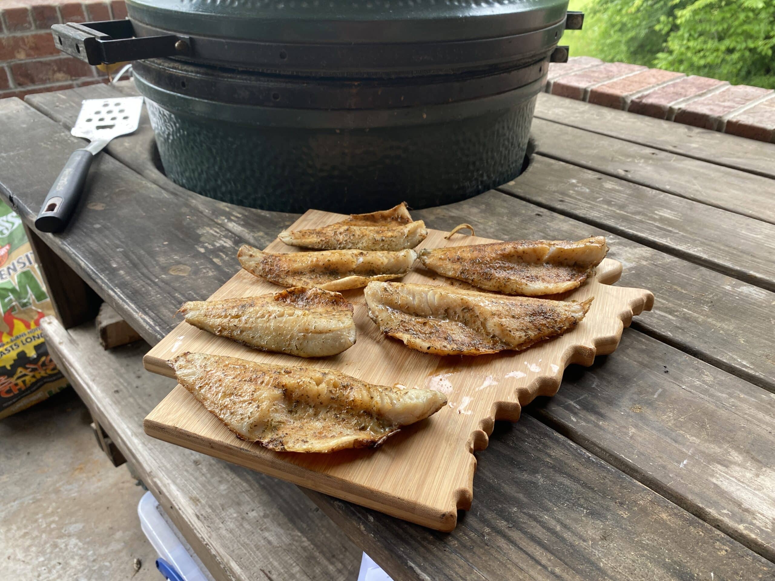 Heat the butter in a heavy-bottomed pan over medium-high heat. Once heated, add in the filets (a few at a time if you can’t fit them all at once). Cook for 3-5 minutes on each side (depending on thickness), or until the outside is blackened and the fish flakes apart easily.