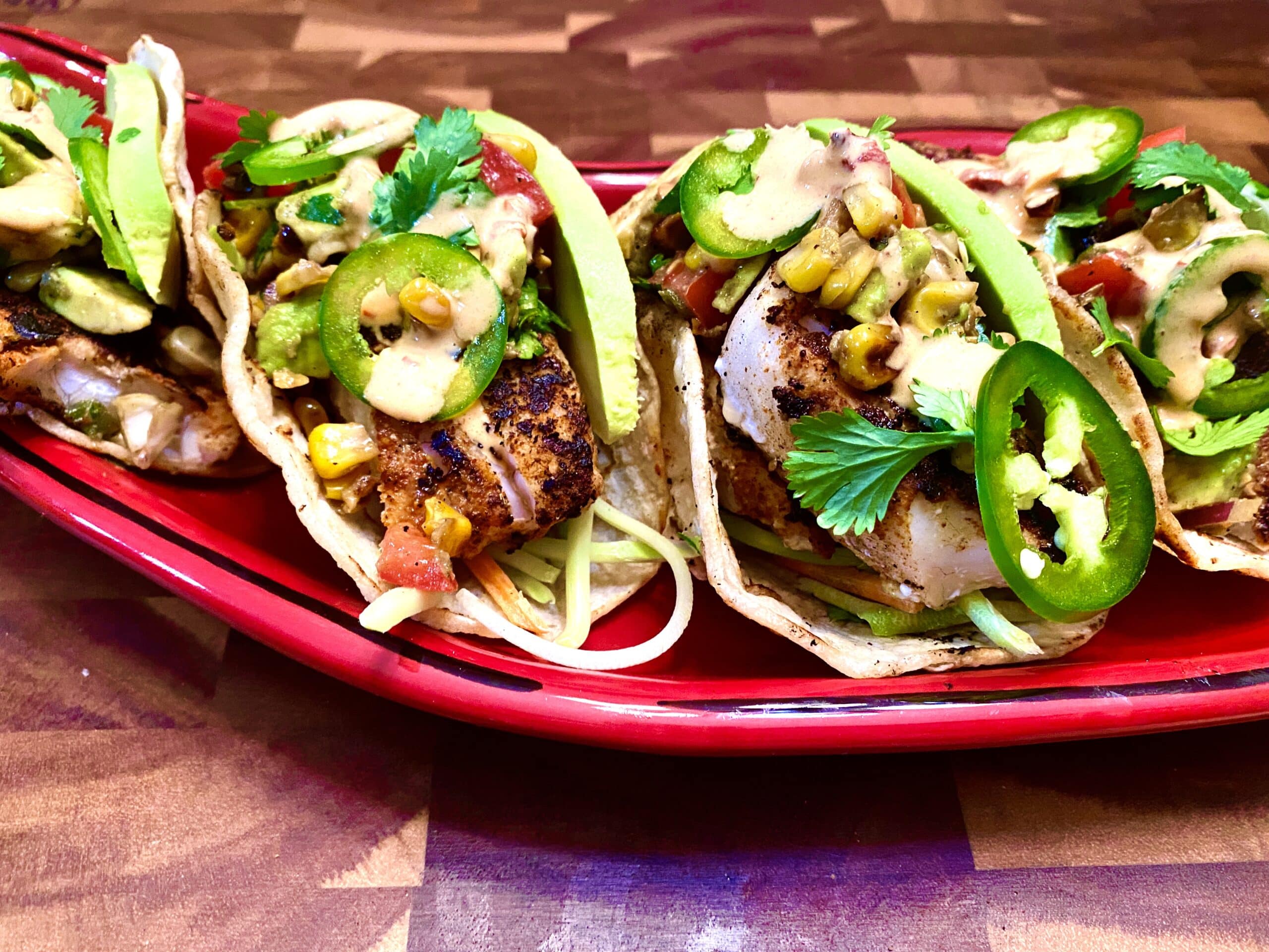 In a medium sauce pan, combine water, rice, butter, and salt. Bring to a boil. Stir once. Reduce to a simmer and cook for about 12 minutes or until the water is absorbed. Remove from heat, stir in the cilantro and lime juice. Rest until serving. The next step will be to create the sauce (which could also be prepared well ahead of time). In a blender, combine sour cream, 2 halve avocados, the juice of 1 lime, one jalapeno rough chopped, and a dash of hot sauce. Blend until smooth and creamy. Refrigerate until ready to serve. Now for the fish. Make sure the fillets are cold and dry. Generously shake your favorite Cajun seasoning and some paprika on both sides of the fillet. If possible cook the fish outside or in a well ventilated area. Heat a large cast iron skillet to almost white hot. Add a ½ stick of unsalted butter. Once the butter is melted, carefully place fish in skillet, do not over crowd. Depending on the thickness, this should take about 2 minutes per side. Remove fish from skillet and repeat until all fish is cooked.