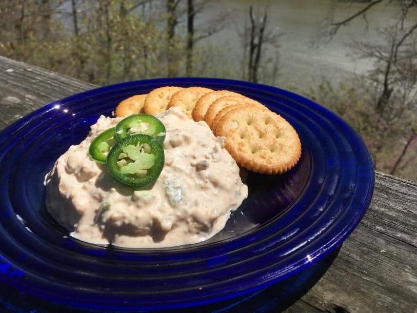 Season a pound of bass fillets with your favorite Cajun seasoning. Smoke at 225 degrees for about an hour or until fish is flaky (I prefer apple or pecan wood for fish). Let cool before adding the rest of the ingredients.