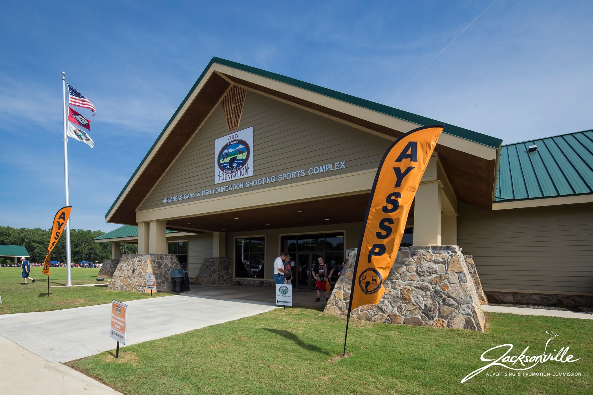 This state-of-the-art public shooting range facility opened on January 25, 2014. The multi-use complex, a partnership between the Arkansas Game and Fish Foundation and the City of Jacksonville, is the largest of its kind in the state. It includes 14 trap fields, three skeet overlays, a 3-D archery range, three lit fields, two pavilions, a lake, and a 5,100 square foot clubhouse that includes a 100 seat classroom. Future plans for this site include a rifle and pistol range. Currently, the range only allows shotguns for trap or skeet, no rifle or pistol.